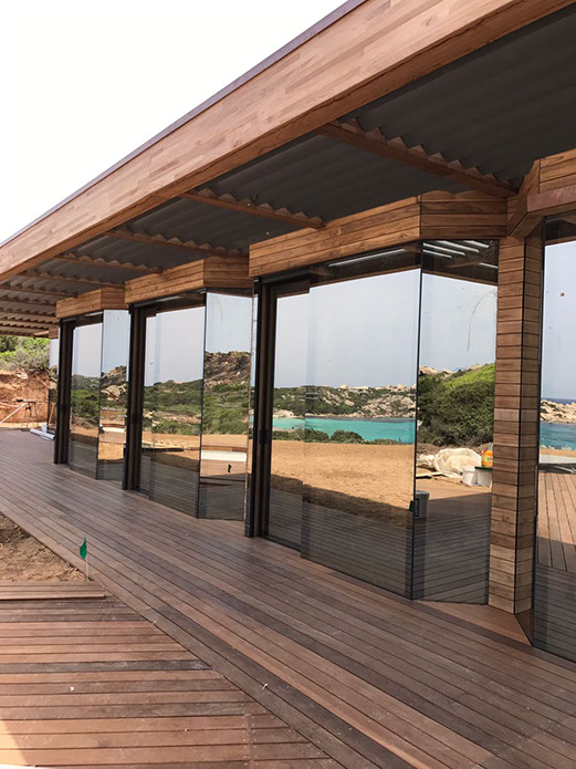 Vetro strutturale, e aperture scorrevoli verticali motorizzate